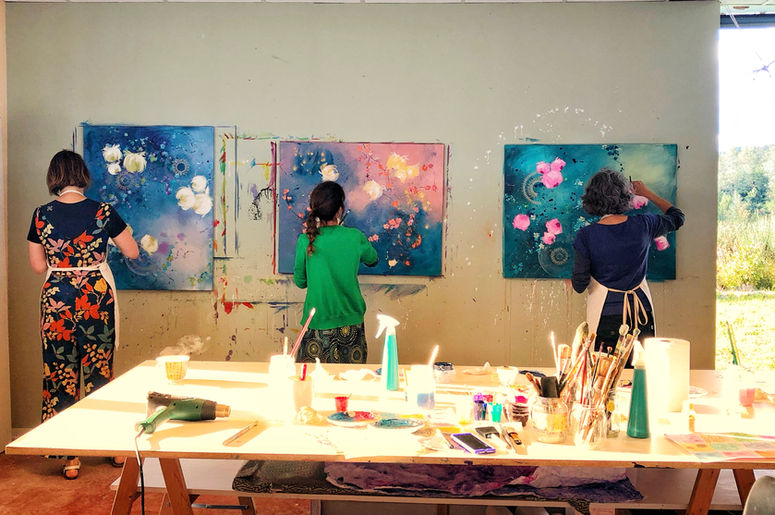 The "Back to Play" Painting Retreat is a nurturing experience suitable for all levels: first-time painters looking for an empowering start on their creative path, experienced painters seeking a new perspective and everybody in-between. This heart-centered and educational retreat offers a vast toolbox of new techniques, along with a fresh creative perspective guaranteed to energize your life on and off the canvas.